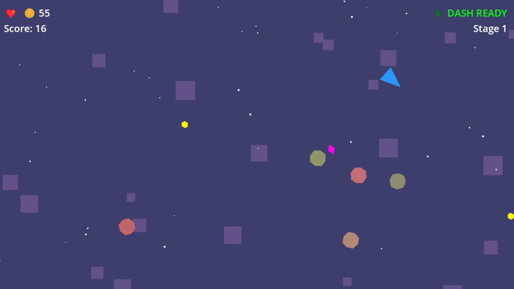 - ๐ก๏ธ Magenta Shield - 3 seconds of invincibility + 10 bonus points